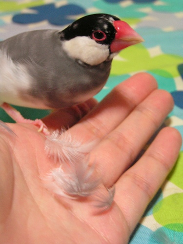 最近、文鳥の抜け羽が半端ねえ。
